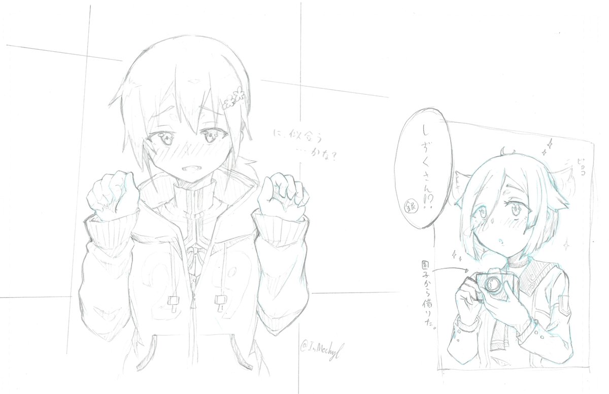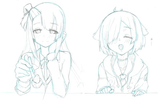 25 90 数年前に描いたラフのまま放置された千景×しずく絵 (千景がしずくにケーキを食べさせてる図) 21/10/16 16:52