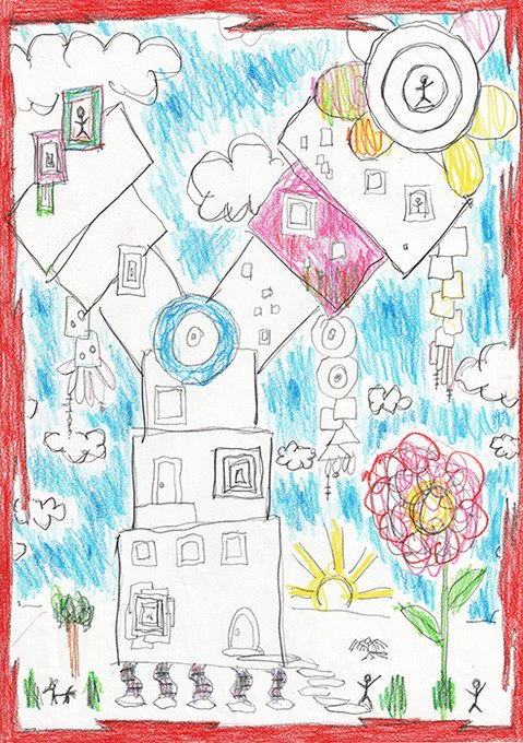 今日は建物の絵を仕上げました。 とにかくY字の建物を描きたくて描きました。 枠を墨ではなく、色鉛筆で赤く塗っているのが 最近の作品との違いです。 子供心に帰る作品になりました。 #建物 #絵 #色鉛筆 #Y字 #赤枠 #子供心 #万回泰玄