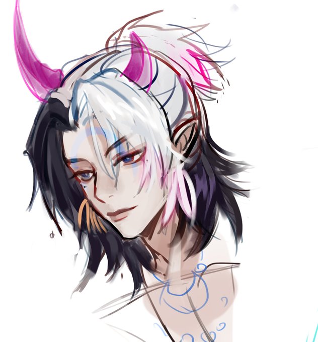 이거 옷 입히기 전에 상탈스케치한거 남아잇길래 생각나서ㅎ.ㅎ 세미누드로 흑염룡 포즈를 취해도 잘어울리는 카다진(40세) twitter.com/manku4444/stat…