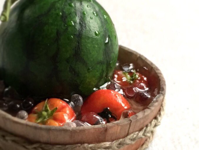 #1枚で本物に見えたらRT 過去に作ったものですが やってみます(*´`) #ミニチュア #スイカ #樹脂粘土
