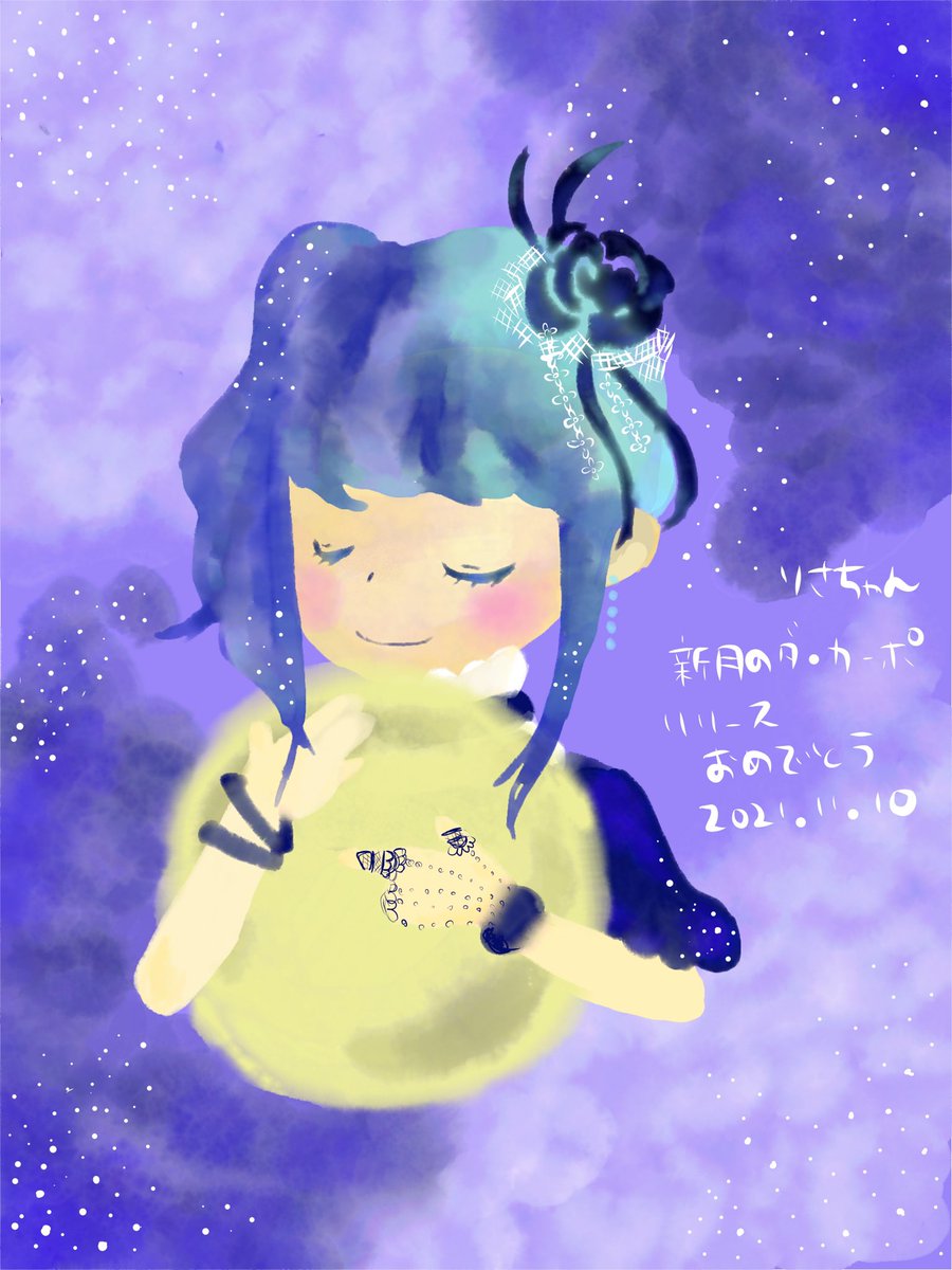 1 11 いまさらなんだけど、、梨紗ちゃん「新月のダ・カーポ」リリースおめでとうございます!この曲の包み込んでくれるような優しい歌詞がとても好きで久しぶりに絵を描いた、、下手なんだけど届けてみます😭明日のワンマンも配信で応援する〜〜!! #でんぱイラ 21/11/13 02:55