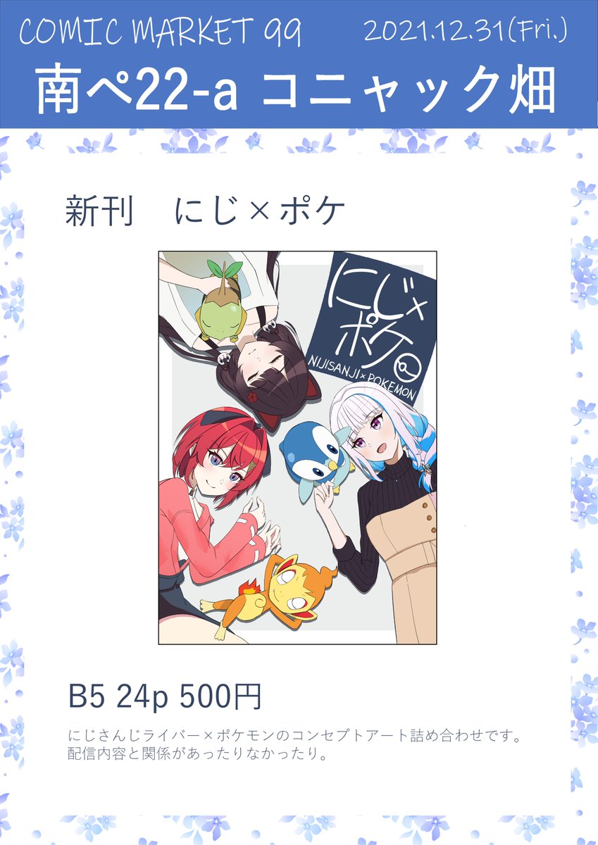 48 185 【C99お品書き&サンプル】 にじさんじライバー×ポケモンをコンセプトに、さんばかを中心に色々描きました! 2日目南ぺ22-aでお待ちしております!! 後日Boothで通販もする予定です!行けないけど興味のあるという方はそちらをよろしくお願いします! 21/12/29 21:55