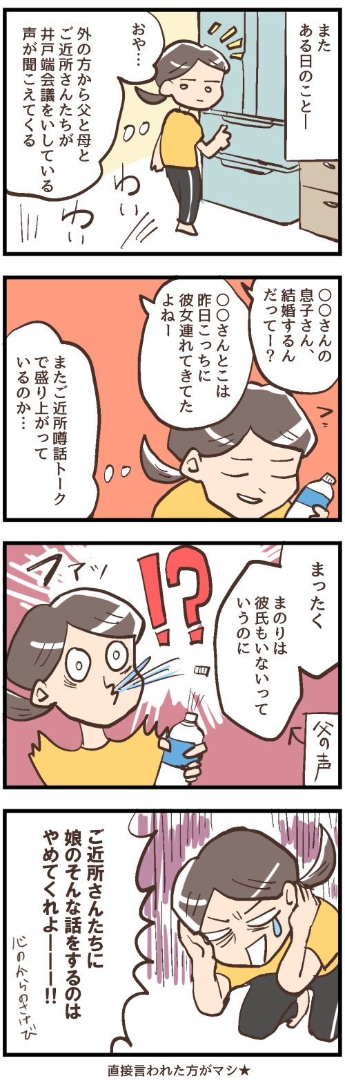 初めて親から結婚の催促をされた話② これで終わり これ以降たまにチクチク言われるようになりました(涙) #エッセイ漫画 #漫画が読めるハッシュタグ #婚活 #アラサー独女ライフ