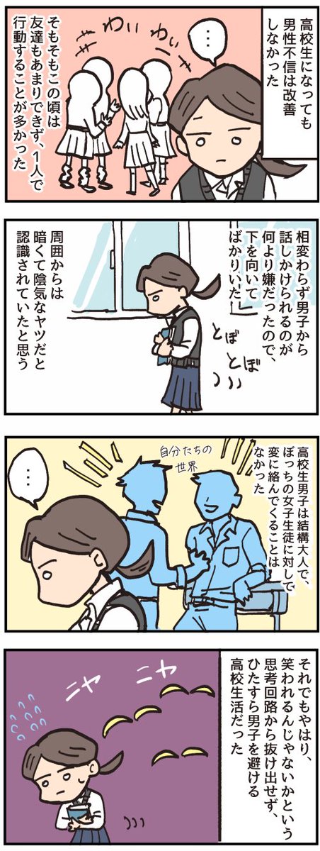 自己肯定感の低さが男性への苦手意識につながっていたのかも? 男性不信だった話その7 #漫画が読めるハッシュタグ #コミックエッセイ #エッセイ漫画 #こじらせ女子