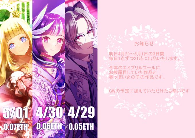 🌸Mano Collection New Illustrations🌸 🌸list April 29 - May 1 A point every day 🌸21:00(JST) We would appreciate your consideration. opensea.io/collection/man… #nftart #nft #NFTartist #NFTCommunity