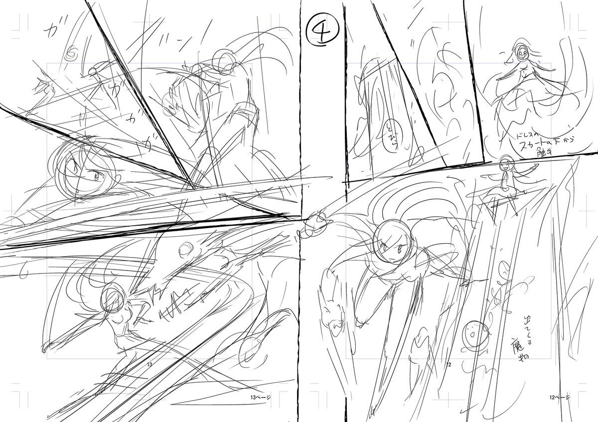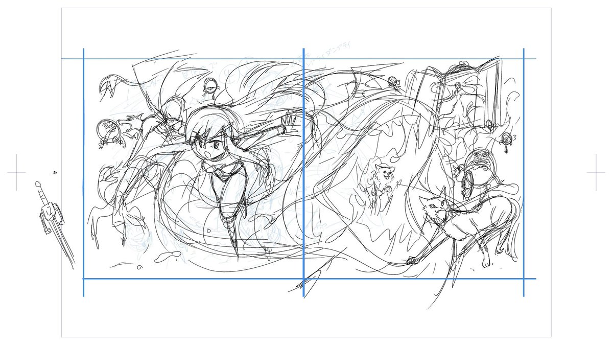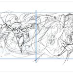 ドリームハンター麗夢CDドラマ「残夢の白百合」のブックレットに描かせていただいたイラストの下描き(左)と「マンガ形式にしてはどうか?」てお話があった時のネーム(右)です。レムちゃんの剣、好き!✨🗡️