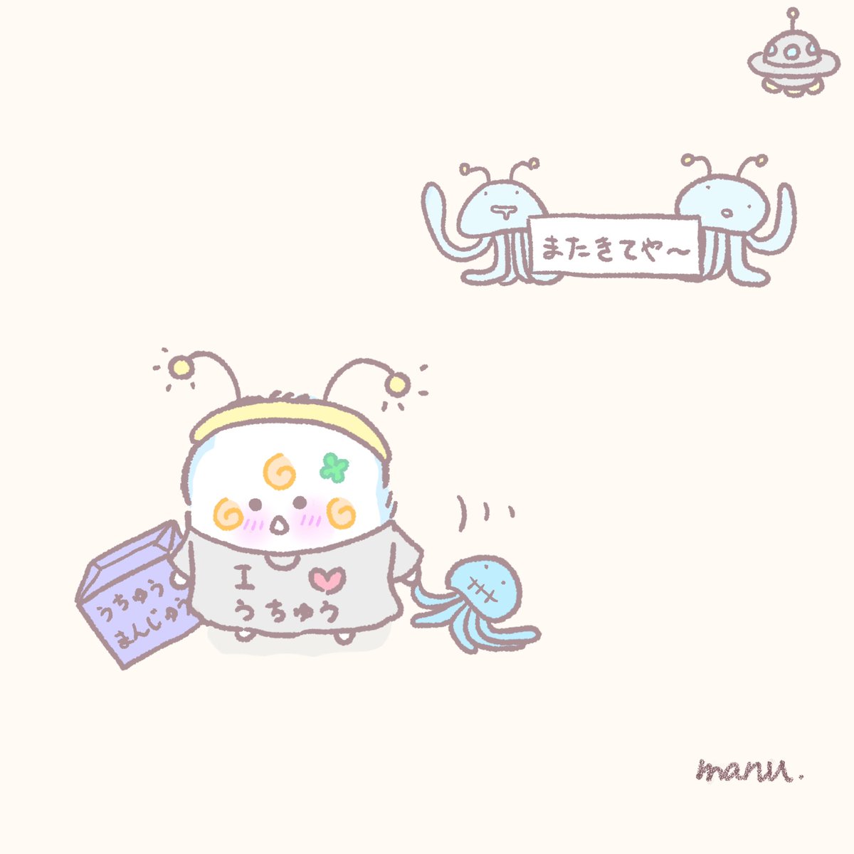 出てきた出てきた! あったか〜いものが🍀 #ふわりーぷ #ゆるいイラスト