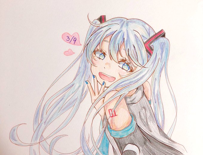 ミクの日に描いた過去絵💙 #初音ミク #イラスト #アナログ #色鉛筆 #VOCALOID #ボーカロイド