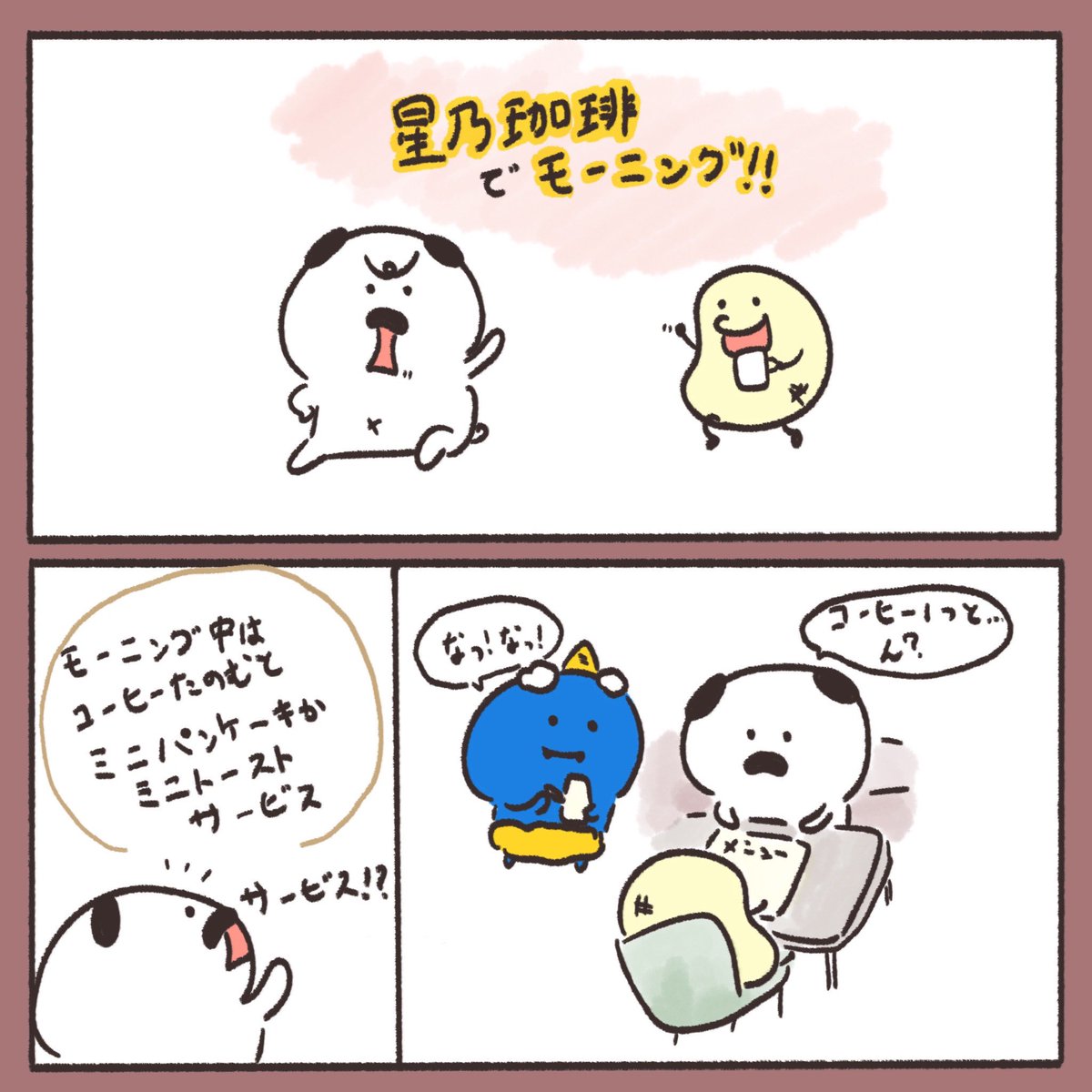 星乃珈琲でモーニングしたよ☕️ #絵描きさんと繋がりたい #マスコット #pug #パグ #イラスト #マンガ #まぬけん #キャラクター #かわいい #いぬ #星野 #illustration #星乃珈琲 #モーニング #パンケーキ