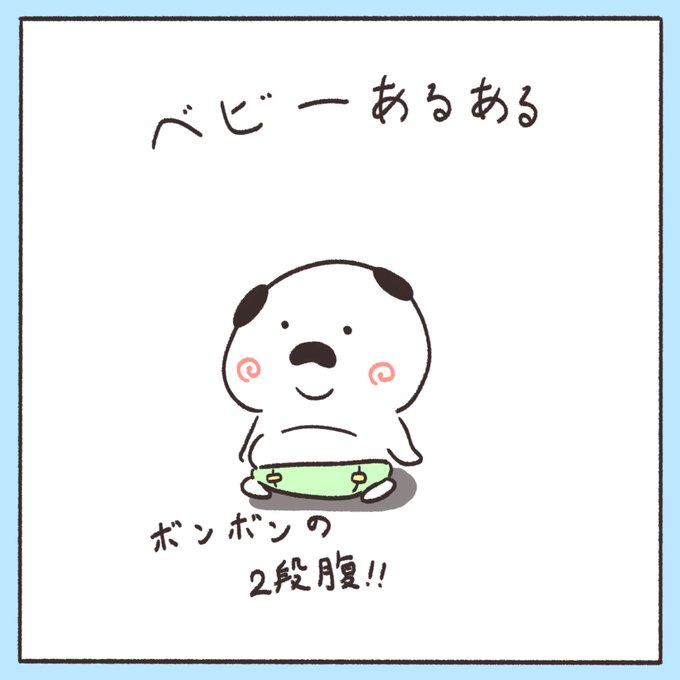 ベビーあるある お腹がボンボンの二段腹!! #絵描きさんと繋がりたい #マスコット #pug #パグ #イラスト #マンガ #まぬけん #キャラクター #かわいい #いぬ #育児 #illustration #夏 #赤ちゃん #子育て #あるある