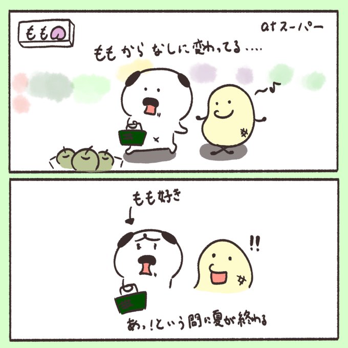 3 24 桃から梨に変わってる、、、🍐 #絵描きさんと繋がりたい #マスコット #pug #パグ #イラスト #マンガ #まぬけん #キャラクター #かわいい #いぬ #育児 #illustration #夏 #スーパー #桃 #梨 22/08/26 15:29