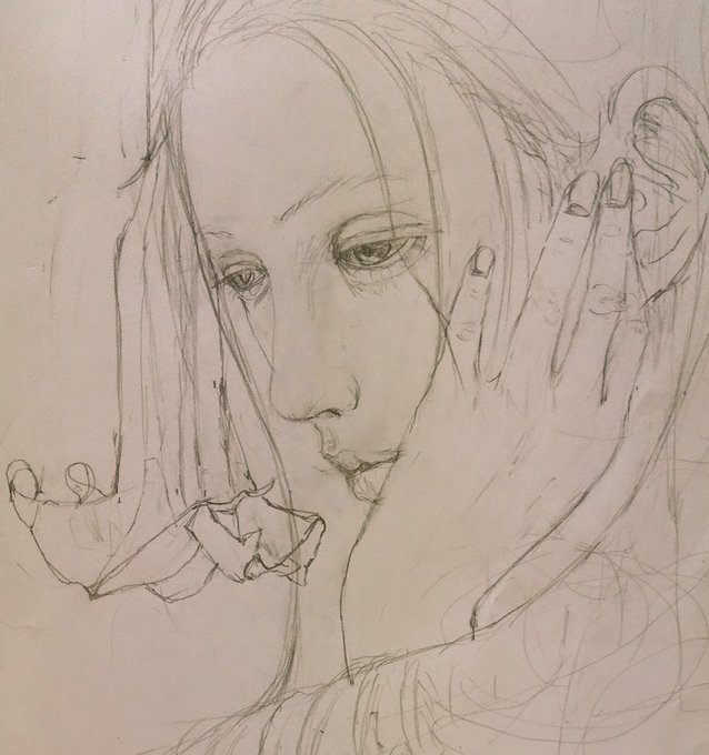 今日は病院で検査 あちこちに微妙な不具合があるけど、以前の検査結果と変化ないので、取り敢えず「ヨシ💮」でした 検査で1日分の体力を使い果たしたので、落描きはこれだけ⬇️😹 #pencildrawing #rkgk
