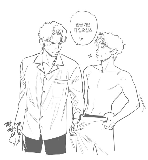 파자마 나눠입는 주원동식..이동슥이 맨날 바지만 뺏어입어서 깔맞춤 실패하는 쭈원...리퀘 감사합니다🫶