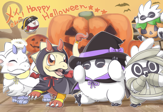 メイさん(@MeiFordArt )の創作キャラ、イエティさん達とうちの創作キャラ達を描かせていただきました!ハッピーハロウィン! #halloween2021 #ハロウィンイラスト展示会2021
