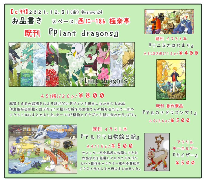 【お品書き】2021.12.31(金)西に-18b 冬コミ当日は既刊と色紙を持って参加の予定です。 よろしくお願いいたします。 スペース配置場所を公開中です。 webcatalog.circle.ms/Circle/Map/157… #C99WebCatalog #c99