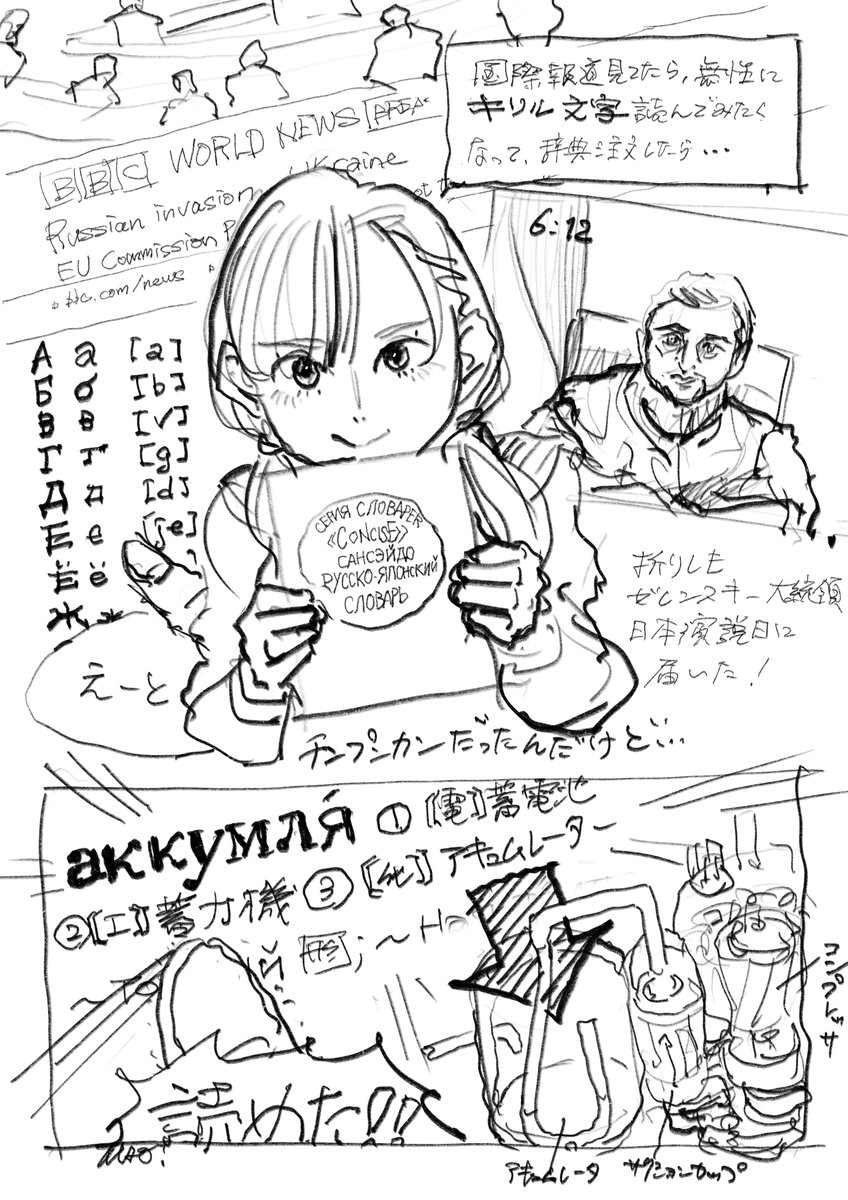 2 44 動乱を詳しく知りたかったのでBBC国際放送聞きっぱなしでゲッソリ。そのせいか、各国の言葉に興味が湧いた月でした。 #今月描いた絵を晒そう 22/03/31 21:57