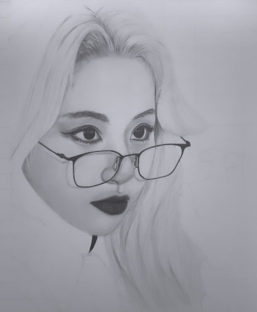 制作過程 髪の毛が難しすぎる #TWICE #チェヨン #CHAEYOUNG #鉛筆画 #似顔絵 #イラスト