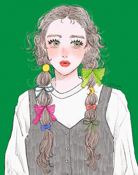 いろいろなリボンと月の ヘアアレンジ🎀🌕🌛 #イラスト