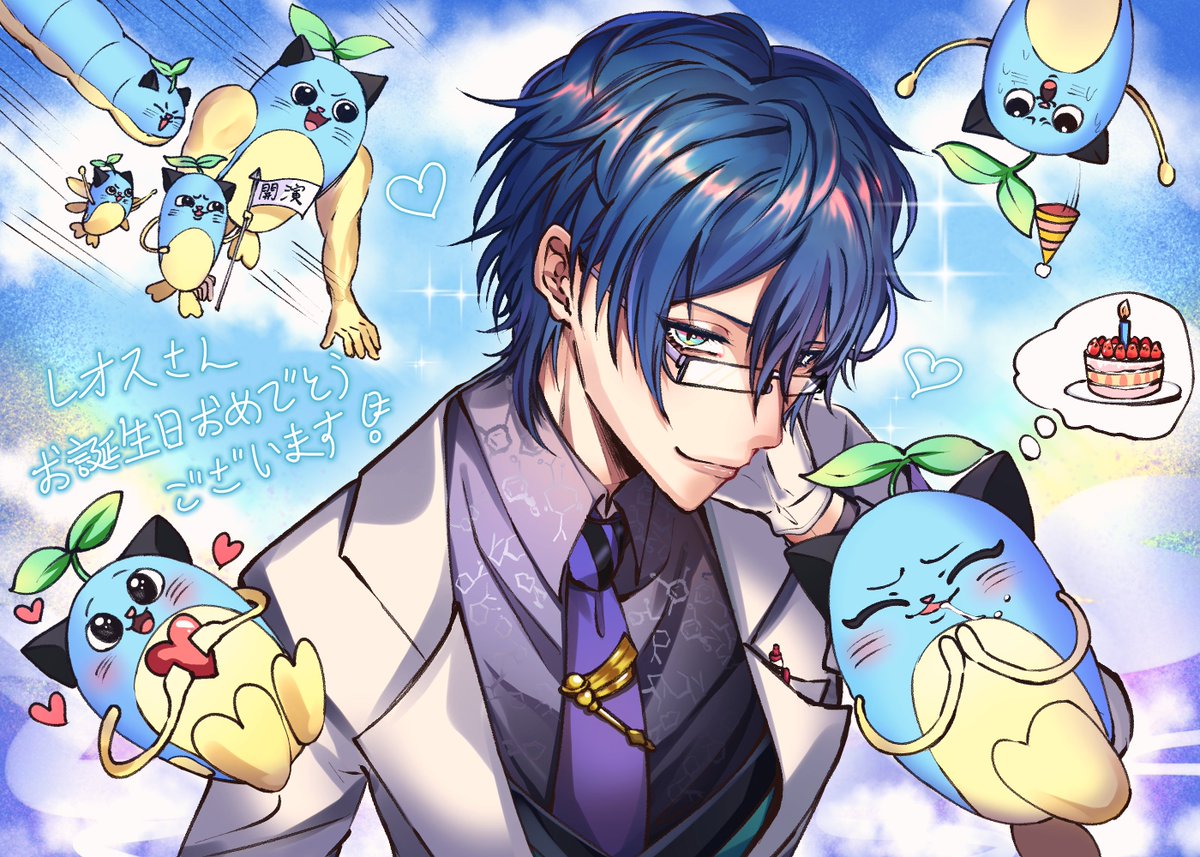 博士お誕生日おめでとうございます!ハッピーな一年になりますように!!🥳🎉💙💙💙💙 #まめねことレオス #レオス・ヴィンセント誕生日29歳13ヶ月
