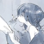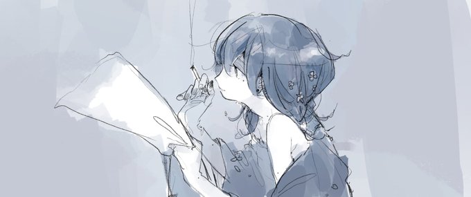 #リメイガエキシビション /小倉まお ▼展示作品について 青単色無背景のスタイルはそのままで、クロード・モネの「日傘の女」を描かせていただきます。 ▼作家通販 BOOTH(現在非表示) mao-dowob.booth.pm ↓画像は既存代表作です