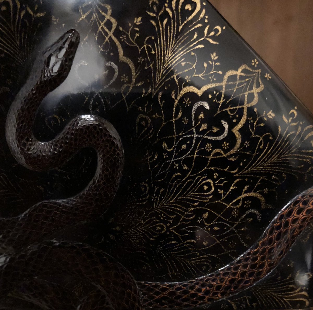 黒に金は絶対かっこいいし、金は映えるんですけど、漆だからこそ出せる色彩の面白さを模索しているこの頃です。 #秋の芸術アカウントフォロー祭 #蒔絵 #漆
