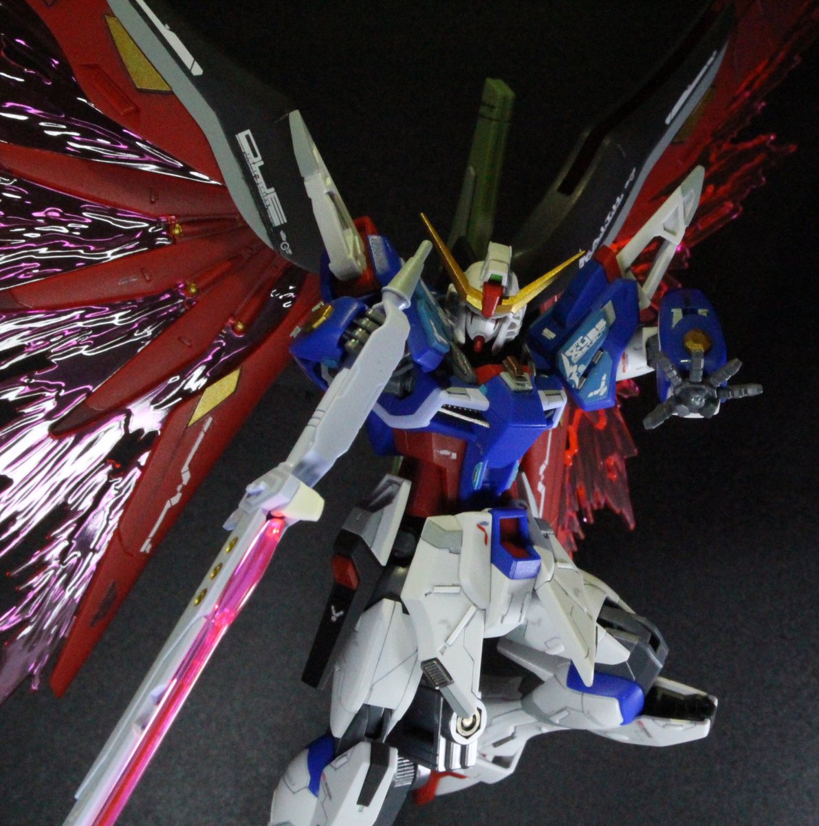 HGCEデスティニーガンダム完成しましたー!🎉 スジボリやプラ板でのディテールアップを行い、筆塗り部分塗装で仕上げました!😆 #ガンプラ #ガンプラ好きと繋がりたい #ガンプラの画像貼るとRTされると聞いて #デスティニーガンダム