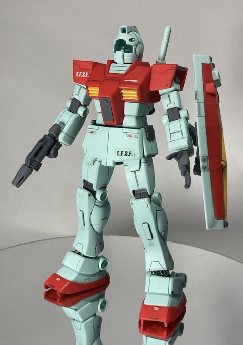 HGジム完成!!🎉 今回は無塗装をテーマに作成 しました😆 元々塗り分けも良好で作ってて 楽しかったー!😊 #ガンプラの画像貼るとRTされると聞いて #ガンプラ好きと繋がりたい #ガンプラ #HGジム