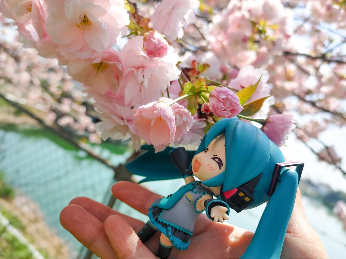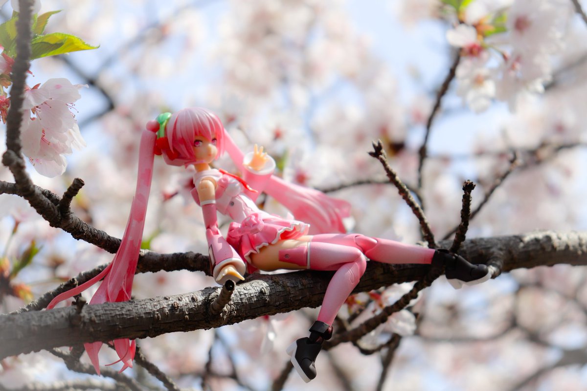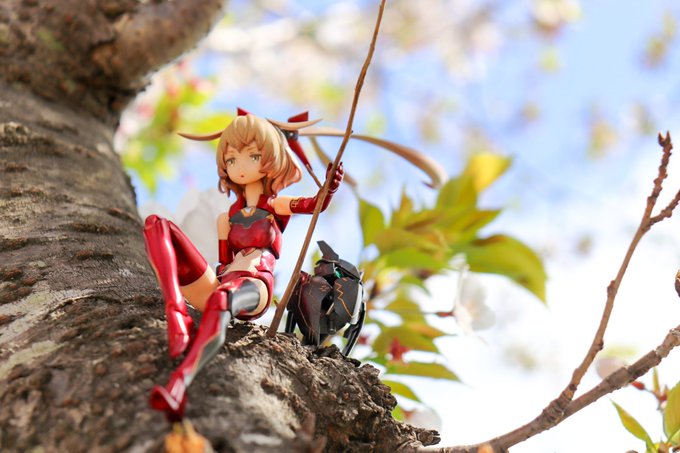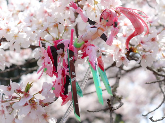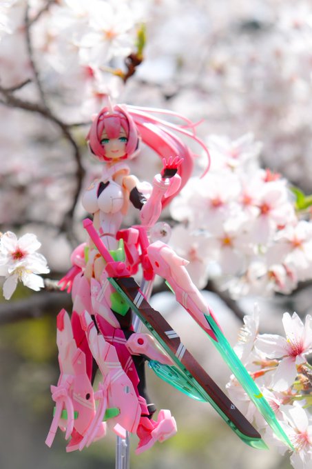 プラモデル × 桜 #メガミデバイス 朱羅 忍者 桜鬼 #フレームミュージック・ガール 桜ミク やはり 自然の中で撮影してあげると とても綺麗(*´▽`*) お天気にも恵まれて良かったー✨