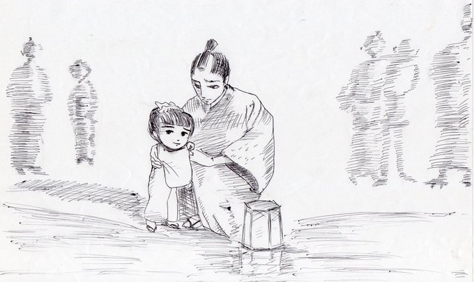 7 28 クボファンアートと言いつつ、主人公のクボを描いていませんが 黄昏時の精霊流しも、好きなシーンの一つなので。 公開 一周年おめでとうございます㊗️🎊 #KUBO 18/11/18 23:51