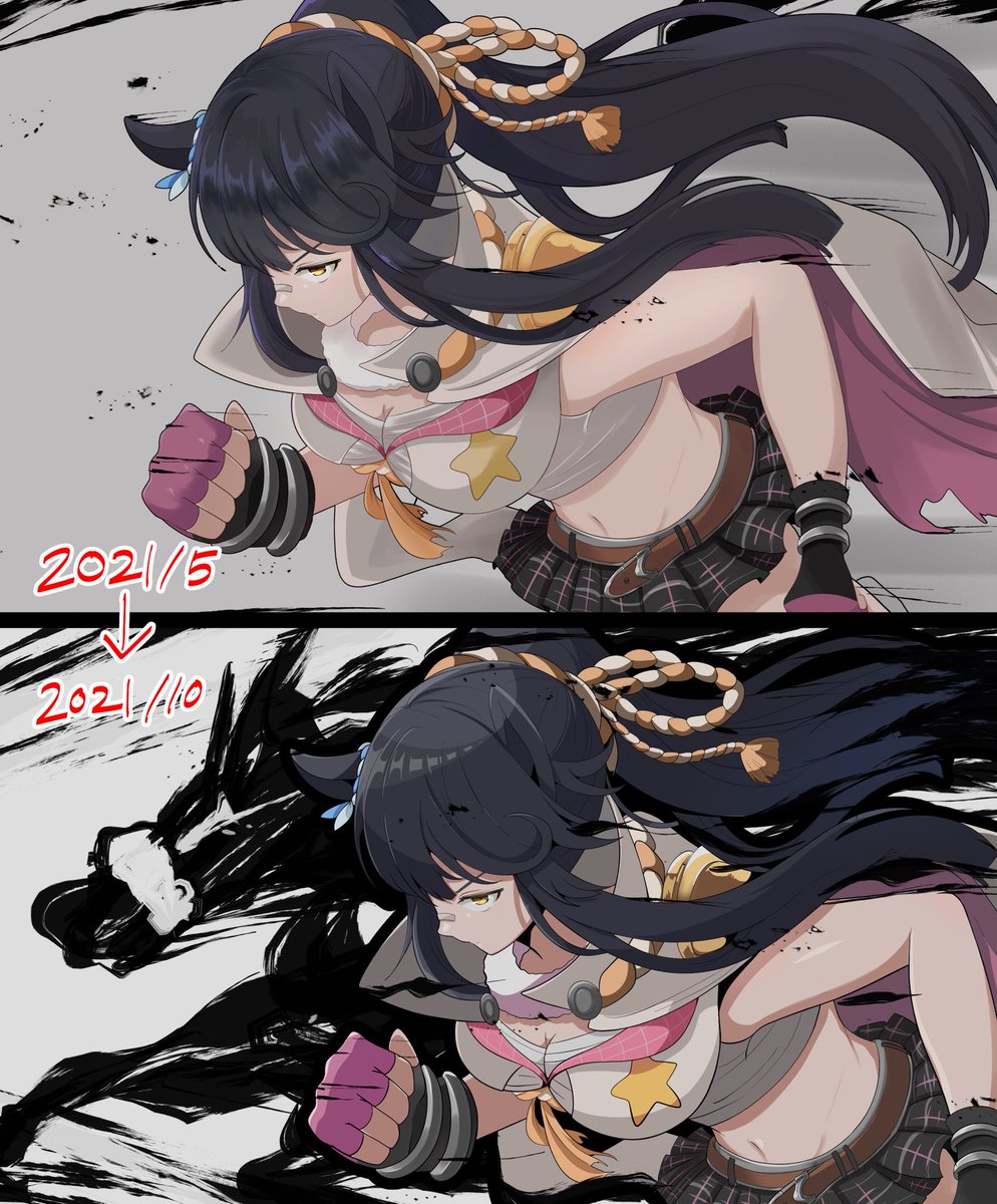 pixivに上げるにあたってそのままじゃ上げたくないレベルのイラストをリメイク(顔らへんと一部描き直し・塗り直し、線画の太さと背景変えだけだけど)してみたら結構変化した感じある #画力変化ビフォーアフター