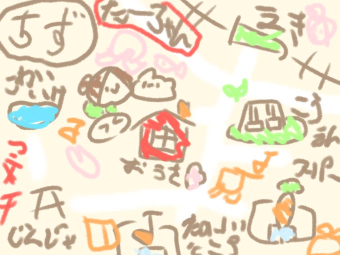 2 11 たーちゃんが描いた、お家の周りの地図です🗺 最近ひらがなを覚えたようで、楽しそうにいっぱい描いてます🌱 (まだカタカナは苦手みたい) #ゆるいイラスト #絵描きさんと繋がりたい 23/03/05 07:20