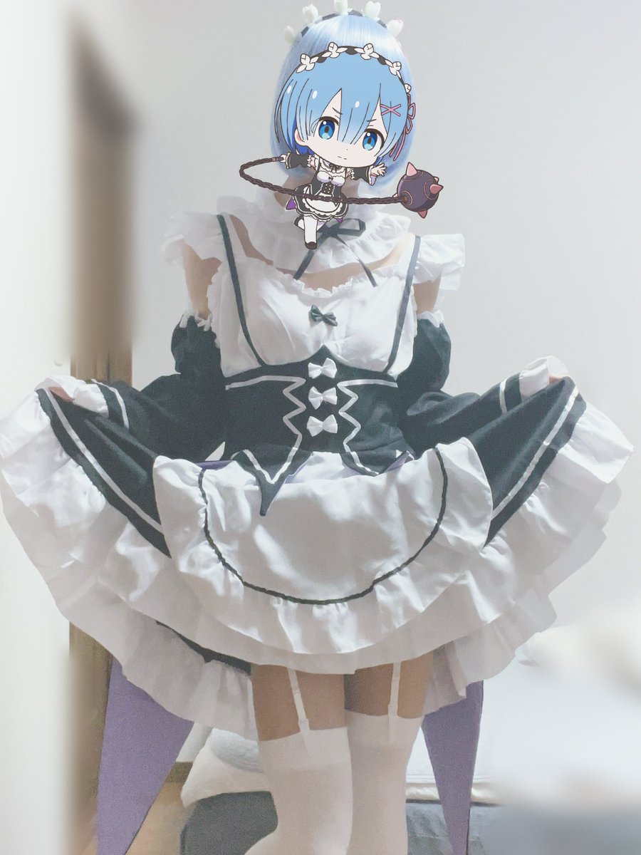 15 77 やっぱりレム(メイド)と言えばガーターベルトという事で買いました!!! 1枚目はサービスセクシーショットだぜ… #コスプレ #レム 22/07/31 20:45