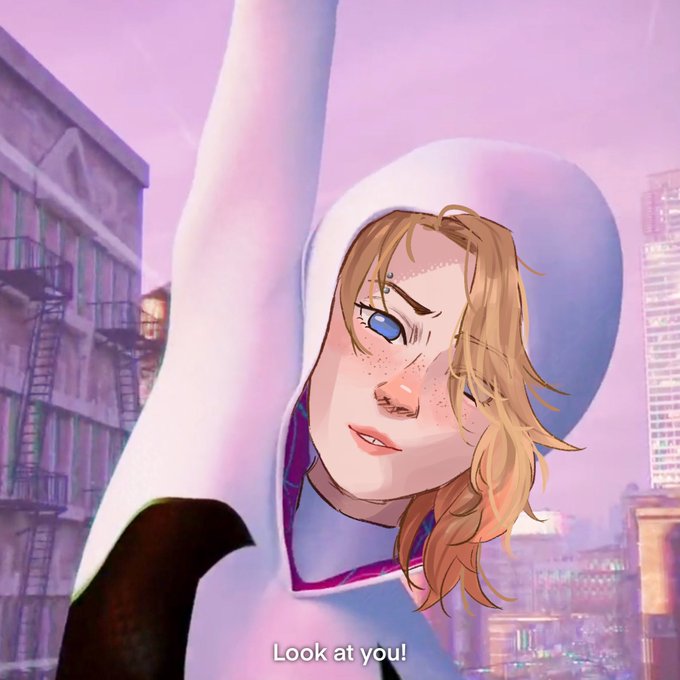 “Can I return it if it doesn't fit? “ “It always fits…, eventually.” #AcrossTheSpiderVerse #SpiderVerse #GwenStacy #SpiderGwen #fanart