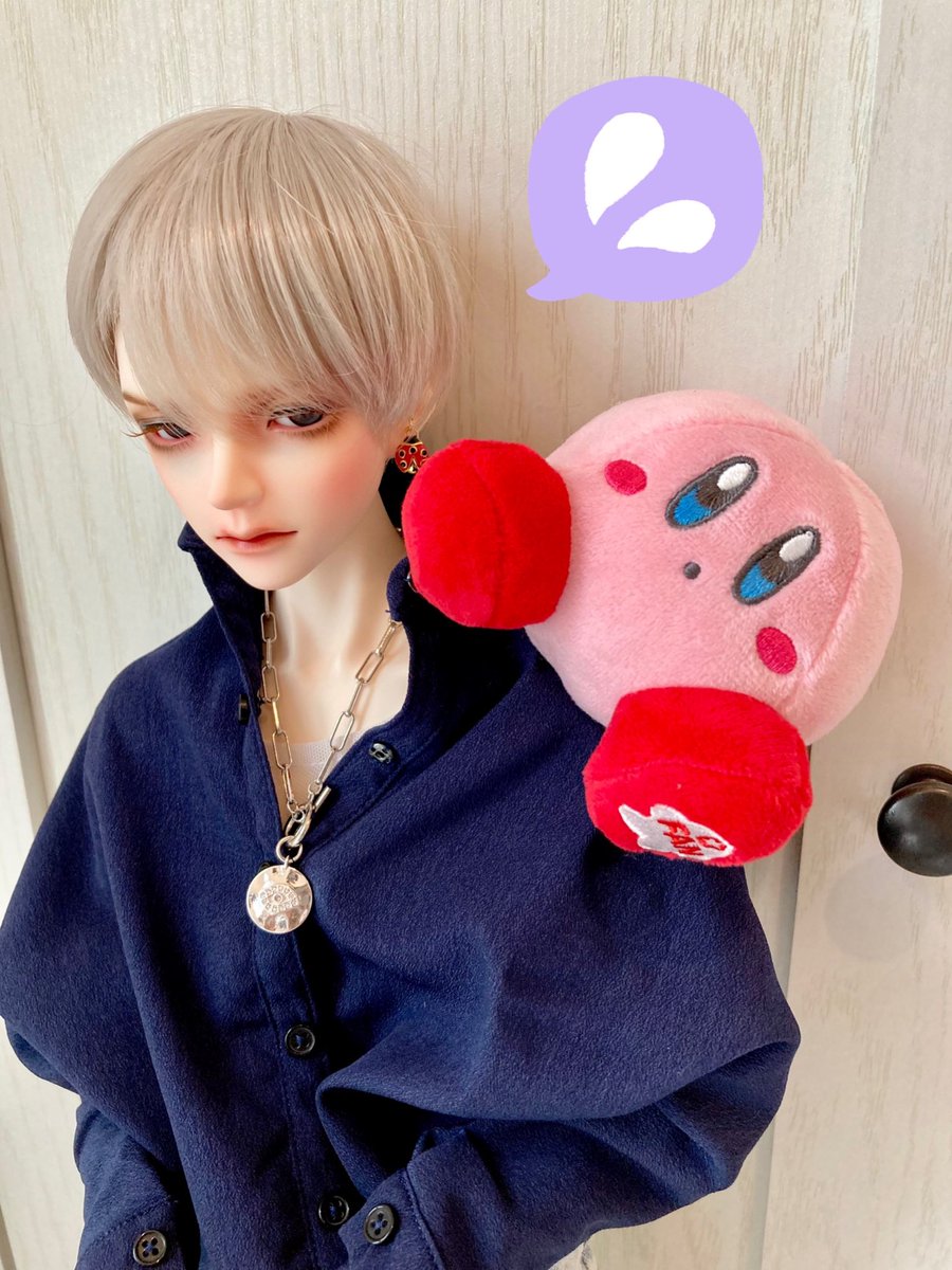 おはようございます! カービィファンのオマケの肩に乗せられるカービィを乗せられて困惑気味の智鶴君です! 磁石で乗せられる仕組み〜 #おはドル