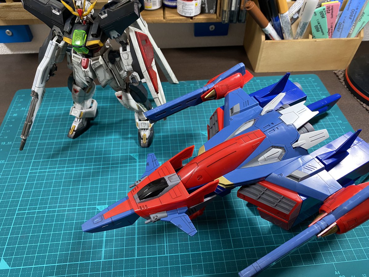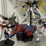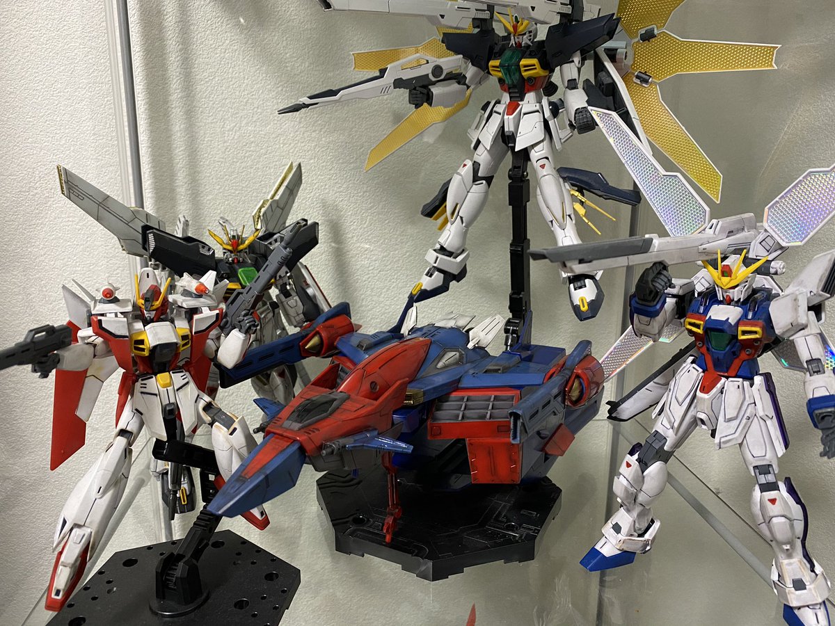 Gファルコンのウェザリングも終わり‼︎ 合体状態で飾るのは無理でした… ケースの4段中1段をXシリーズで☺️ #ガンプラ #ガンプラの画像貼るとRTされると聞いて #ガンプラ好きと繋がりたい