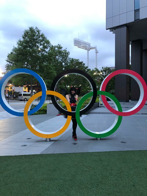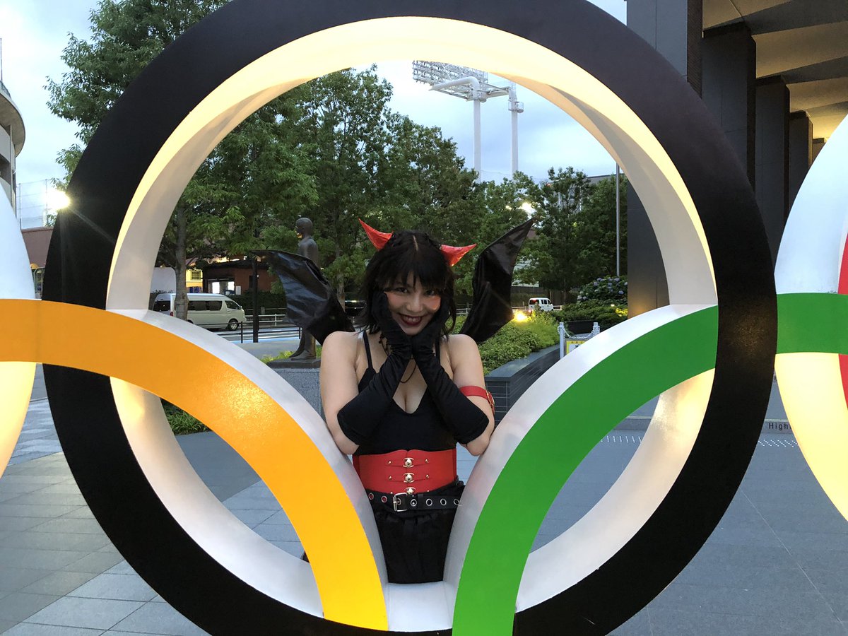 ついにやって来たオリンピック✨ 小悪魔のコスプレしながら五輪の前で撮って貰った貴重な写真❤️🥰 #オリンピック #荒野行動 #ゲーム #ゲーム好きと繋がりたい #小悪魔 #コスプレ #無加工 #iPhone #写真