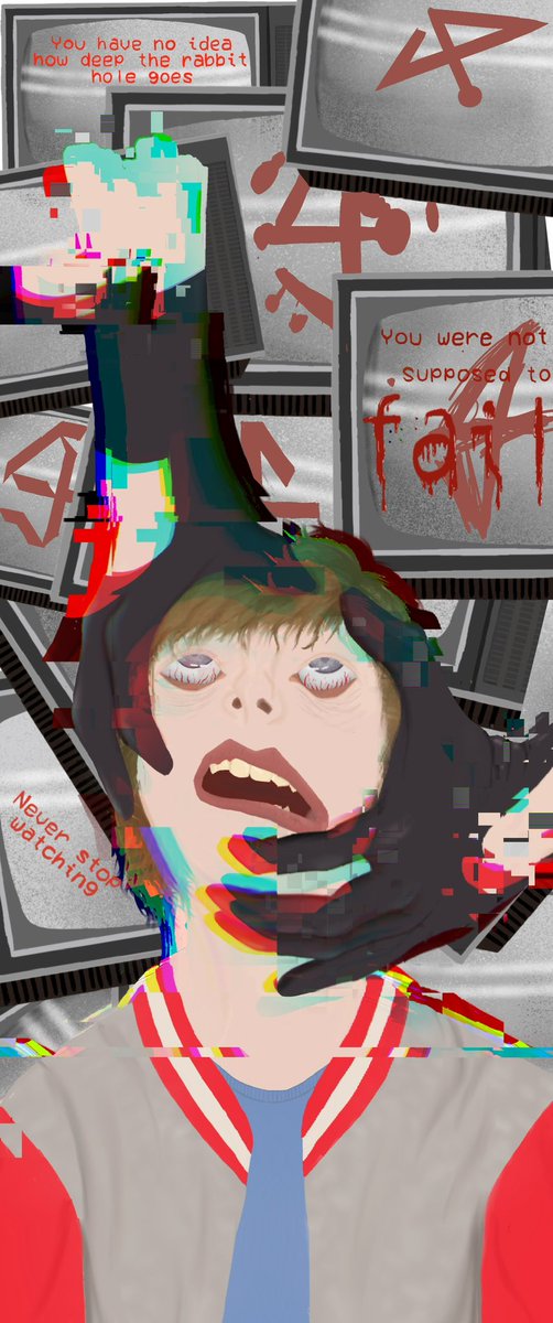 //glitching, face/eye pulling, repeated background “Round and around and around, life’s a blur” (click for full image) #generationlossfanart #ranbooart #genlossfanart #ranboofanart