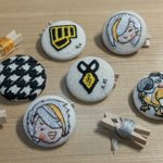 メイカちゃんのくるみボタン6種、やっと完成した〜!! 髪の毛のグラデーション縫うのがとても楽しかったですん!! #漢気名画 #make_a_art