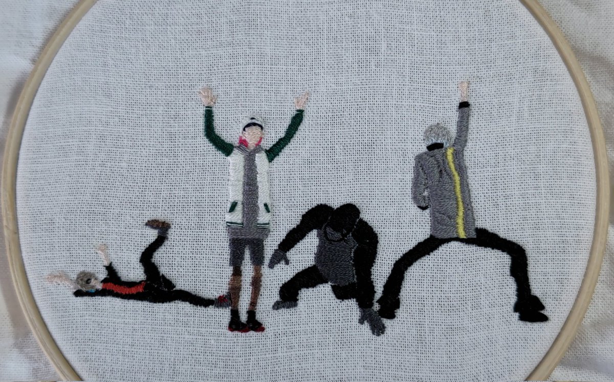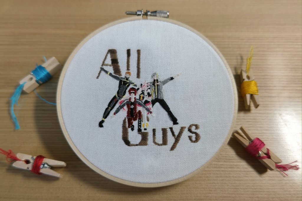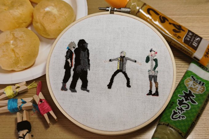 煩悩キービジュ刺繍〜! 大騒動も楽しみだ〜💃 #MZMart #akkunart #天絵画 #佐藤ホームズ展覧会 #漢気名画