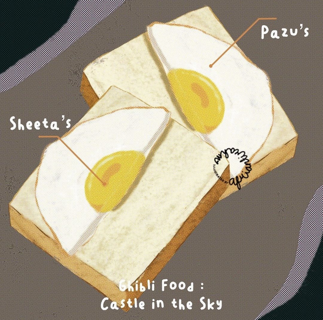 Ghibli Food Series - Piknik di dalam gua bersama ayang meski cuma roti dan telor ceplok setengah ewang tetap menyenangkan. (Castle in the Sky - 1986). 🍞🍳 #ghiblifood #ghiblifanart #foodillustration #artistsontwitter #artidn