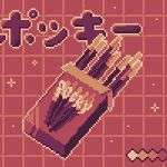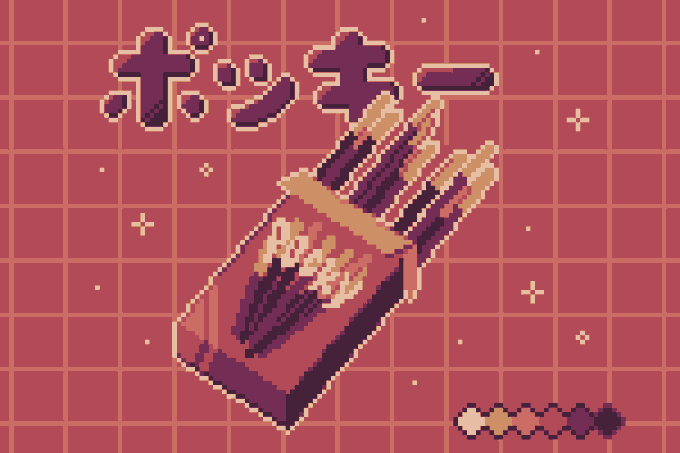 22 99 weeks ago while i was walking at night, someone in a black devil mask wordlessly gave me pocky then left. didn't get to say thanks, so thanks !! #pixelart #ドット絵 22/11/13 10:27