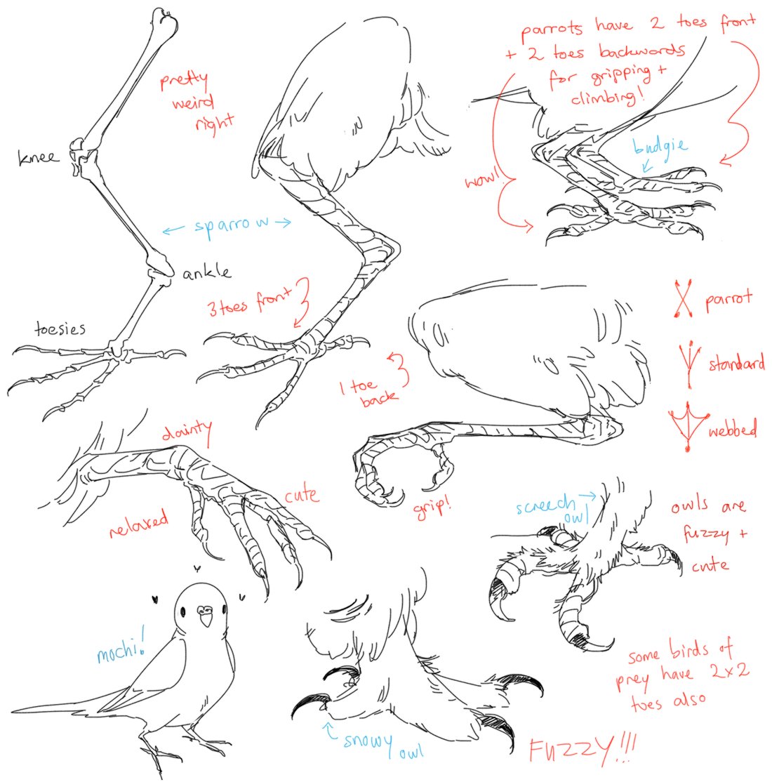 anon on tumblr asked about harpy legs but i got carried away drawin bird feets bc i love them