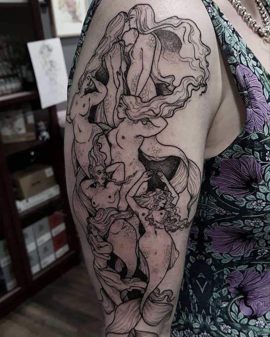 tattooed this beautiful #mermay appropriate design on the lovely @lady_spacefish yesterday, who also designed it! go check out her work, its wonderful <3