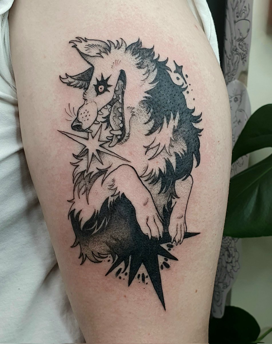 hungry star-eating wuff for a lovely client before we went into lockdown again 🙃 i miss tattooingggg