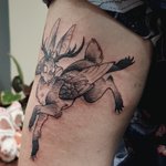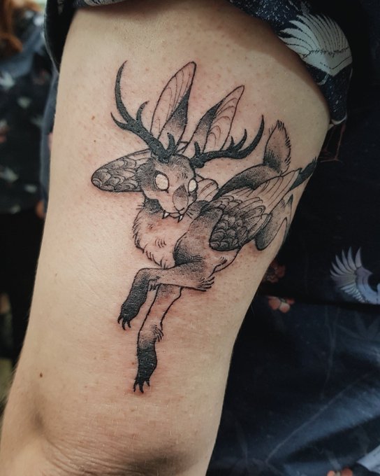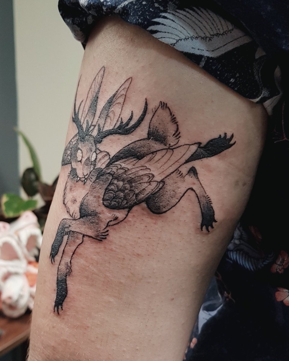 43 218 this one was fun! i wanna do more weird cryptid flash pieces!! do tattoos qualify as an inktober thing 🤔 19/10/05 07:31