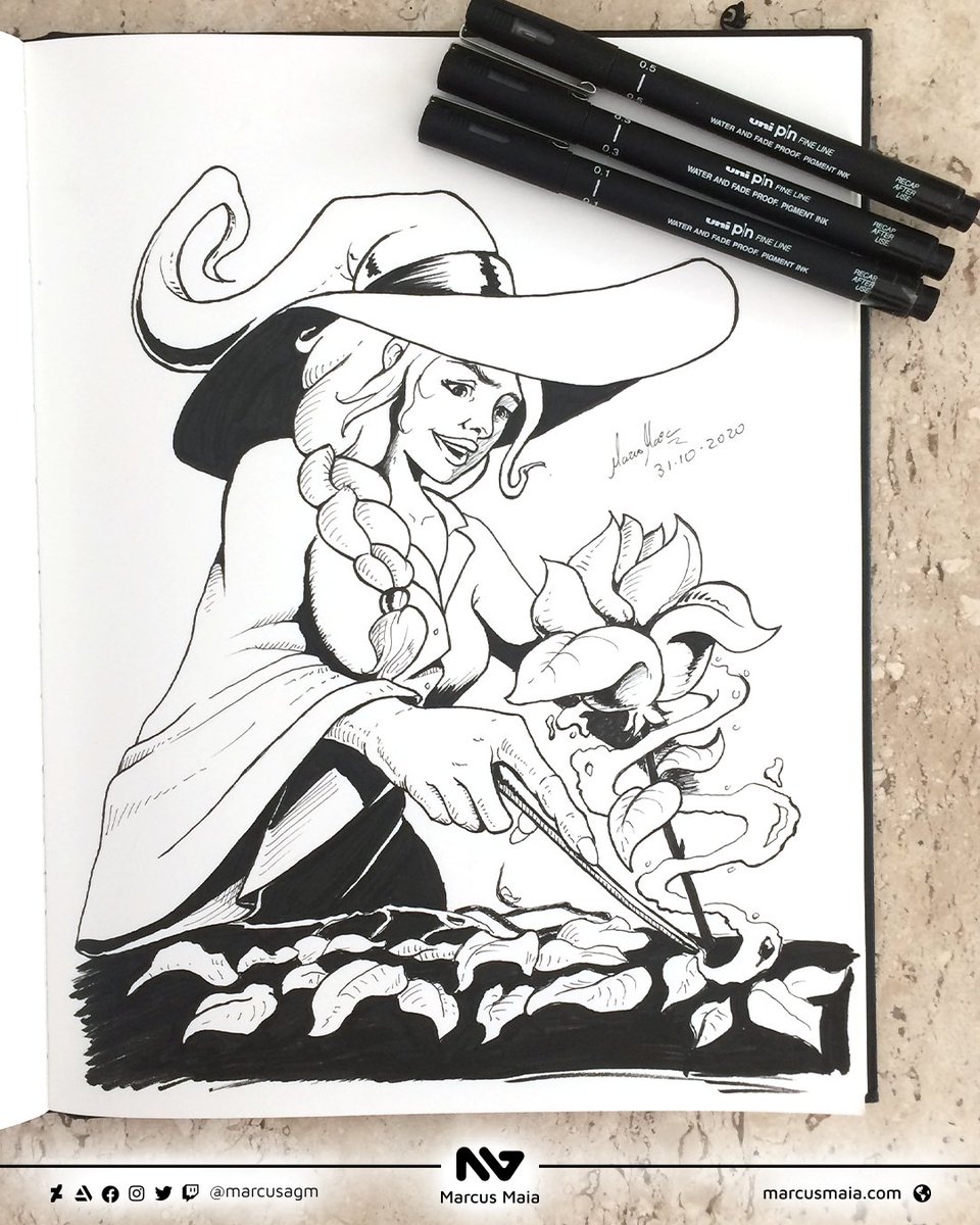 31 - Bruxa do bem Terminando o #MakInktober. Mais uma vez foi bem divertido e aprendi muito durante o mês! Espero que todos os que participaram tenham tido uma boa evolução e aproveitado bastante também. Muito obrigado!! #sketch #witchtober #ilustração #comission #inktober2020
