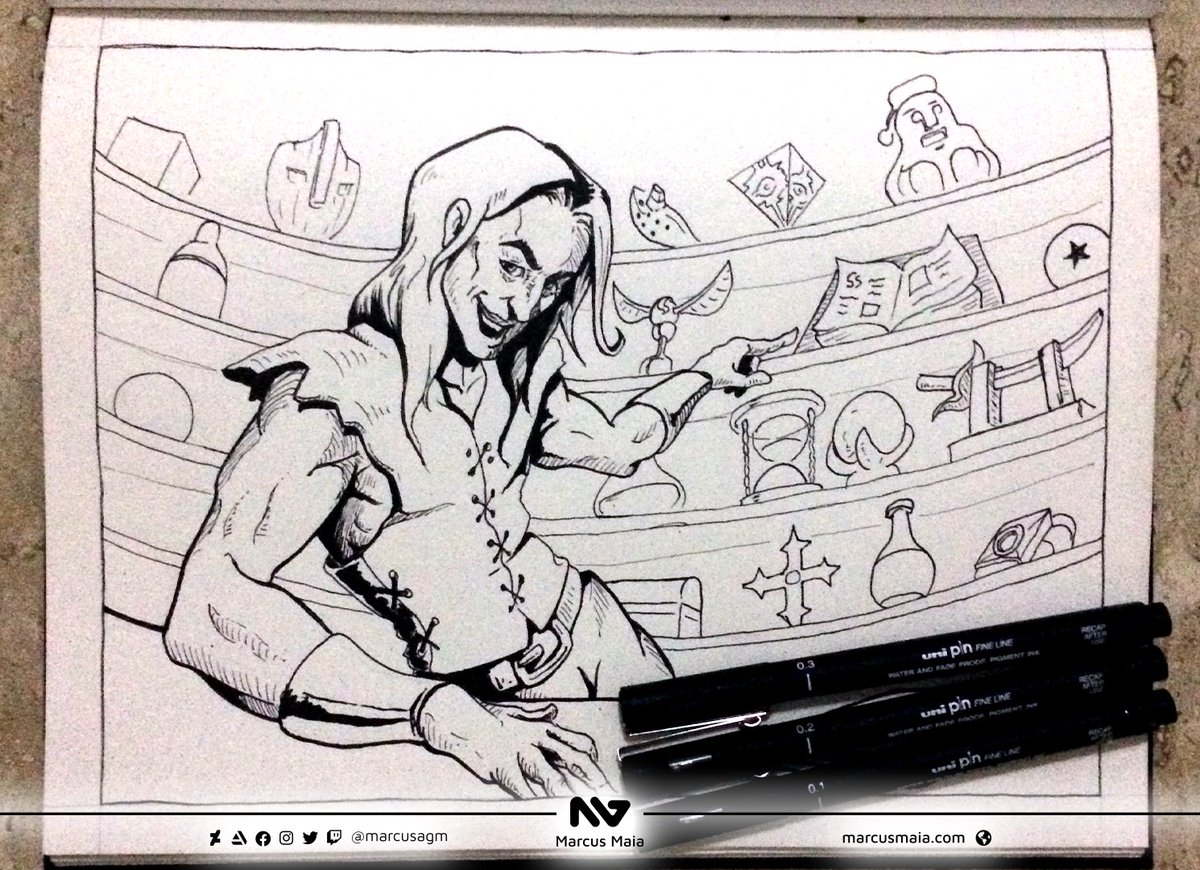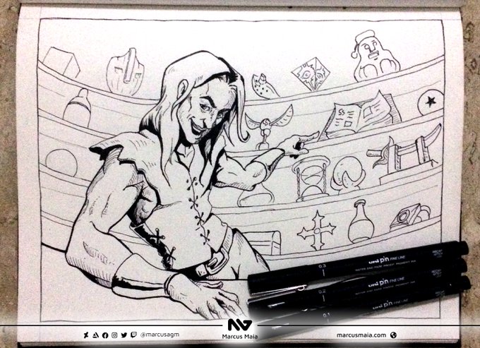 Dia 29 - Vendedor de artefatos Nesse arrisquei uma perspectiva um pouco diferente #markinktober #inktober #inktoberbrasil #tintatubro #inktober2020 #inktober2020day29 #sketches #ilustração