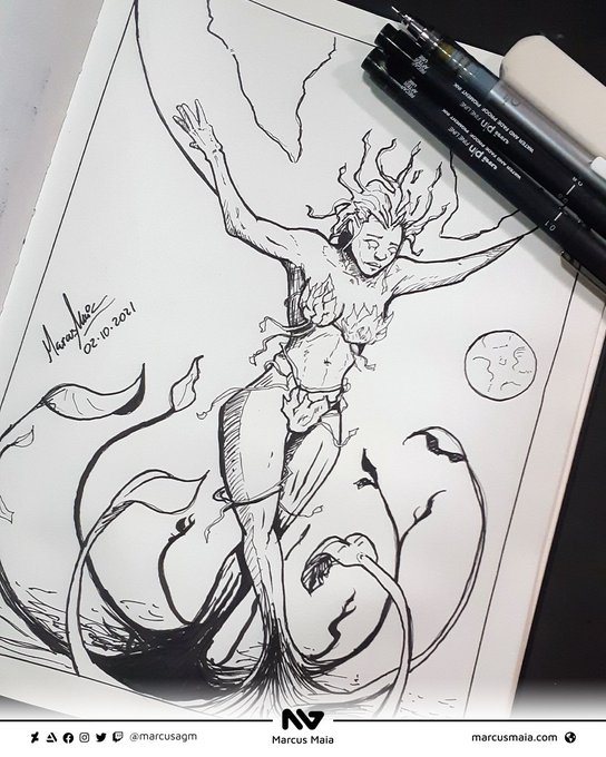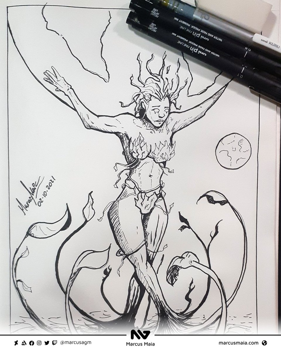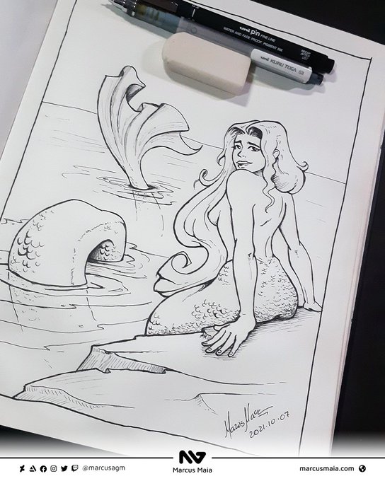 #ttvArtTober - Dia 7 Tema: Lenda / Legend 🧜♀️️Esse tema foi complicado de pensar em algo, mas deu para estudar algumas coisas sobre composição que já tinha tempo que queria. #ttvArtTober2021 #inktober2021 #Inktober #Mermaid #art #ArtOfTheDay