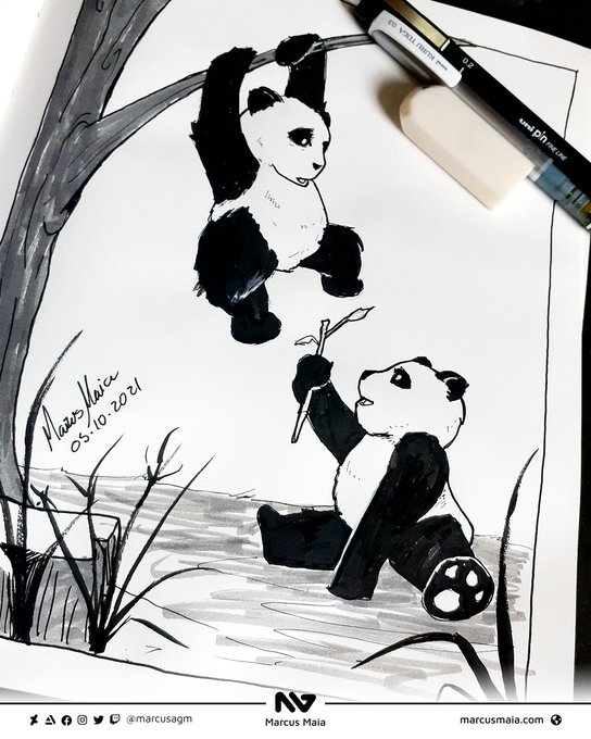 ttvArtTober - Dia 05 Tema: Fofo / Cute 🐼 Como fazer aquele amigo loco parar de fazer maluquices arriscadas? #ttvArtTober #ttvarttober2021 #inktober #inktober2021 #tintatubro #twitchbr #inkdrawing #uniball #uniballbrasil