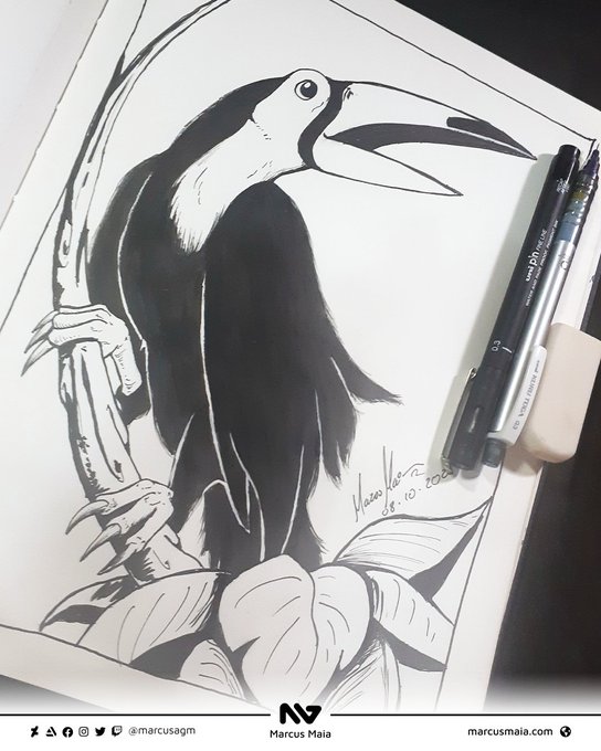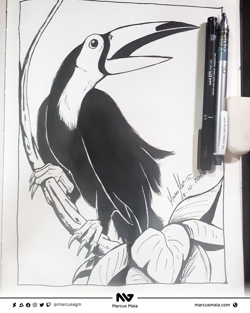 ttvArtTober - Dia 08 Tema: Tucano / Toucan 🦜 Hoje é o dia de prestigiarmos a maravilhosa fauna brasileira. #ttvArtTober #ttvArtTober2021 #inktober #inktober2021 #sketchbook #sketches #doodle